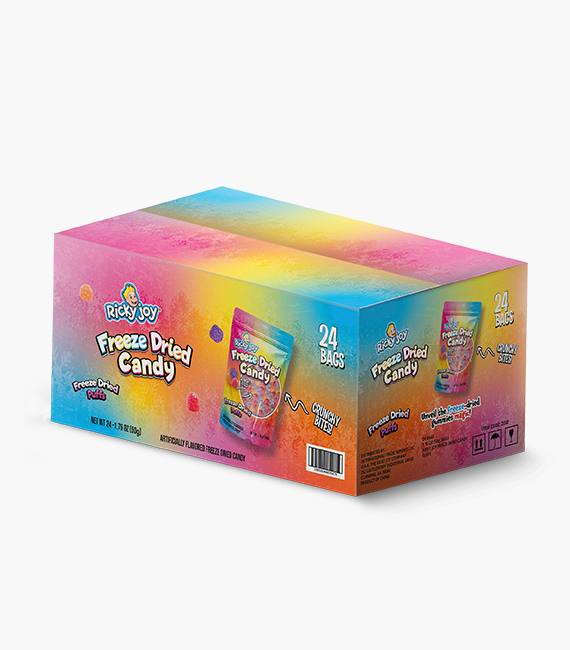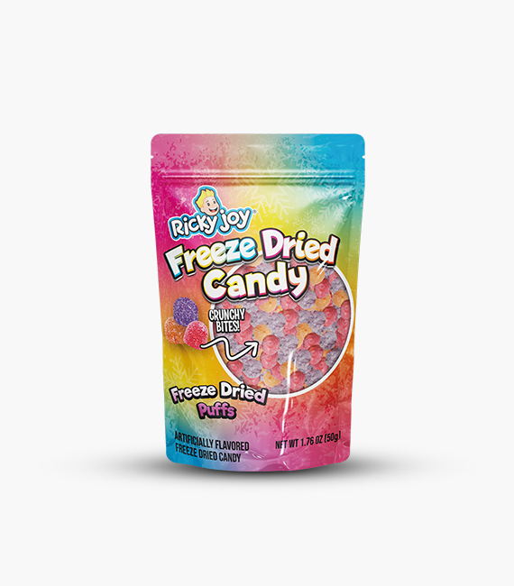 Crunchy, flavorful and fun freeze dried gummies Colorful and captivating package design that grabs attention on the shelves Innovative resealable and self-standing package.